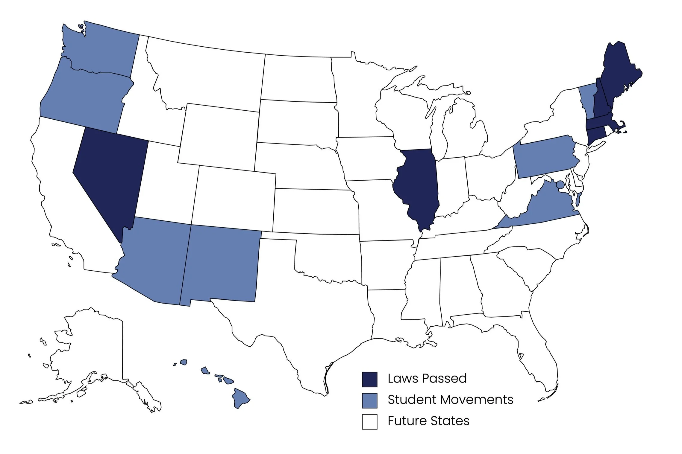 Students and survivors in fourteen states and Washington D.C. are shaping the policy that directly affects them the most and leading movements for change.